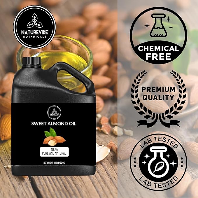 - ✅Sweet Almond Oil 32 Ounces by Naturevibe Botanicals | 100% Pure and Natural | Great for Skin and Hair | Body Oil | Cold-Pressed Almond Oil (946 ml)