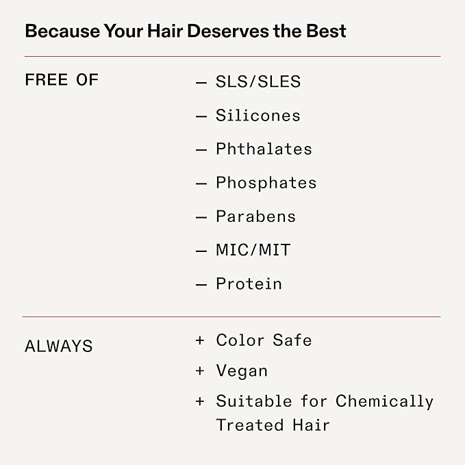 - Hair Type: Fine, Medium & Thick Hair Texture:Straight, Wavy, Curly, and Coily Hair Concerns: - Frizz - Color Safe - Damage, Split Ends, and Breakage Key Benefits: - Reduces breakage and split ends - Visibly strengthens hair