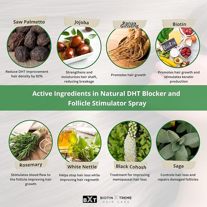 - Natural DHT Blocker: Our Biotin Hair Restoration Spray for men and women is a drug-free solution designed to naturally block DHT, a key contributor to hair thinning and loss, using effective and natural ingredients.