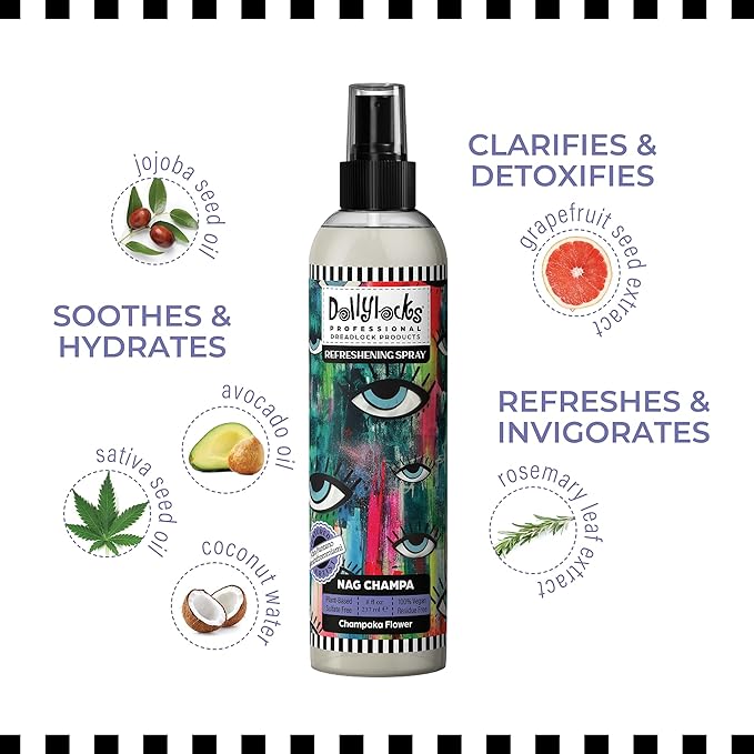 - INSTANTLY REFRESH & REVIVE: This lightweight dreadlock spray eliminates odors, neutralizes buildup, and restores freshness with every spritz. Use daily to awaken your locs or braids with the earthy Nag Champa scent.
