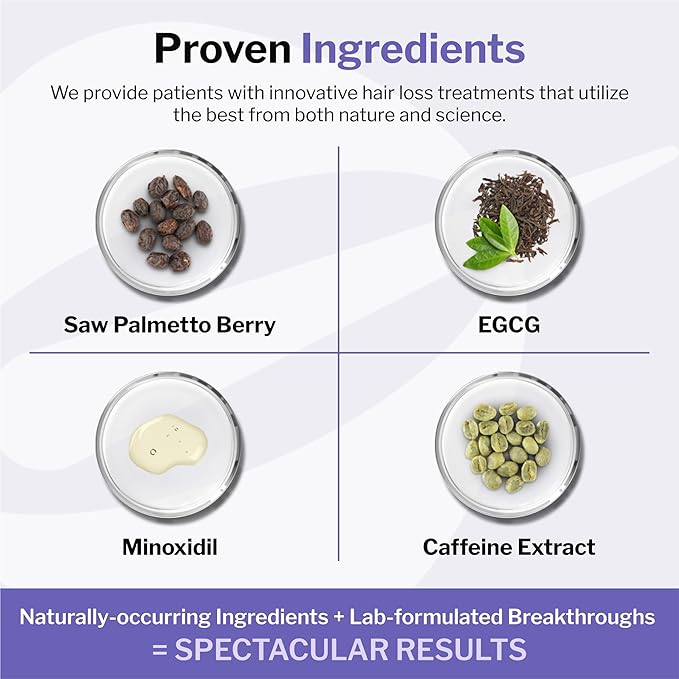 - Active Ingredients : Saw Palmetto Berry, ECGC, Caffeine, Minoxidil