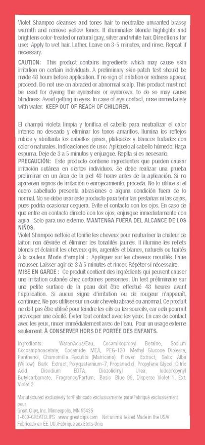 - BRIGHTEN COLOR-TREATED OR NATURAL HAIR: Solutions by Great Clips Violet Shampoo is a toning shampoo formulated to brighten and enhance blonde, gray and white hair.