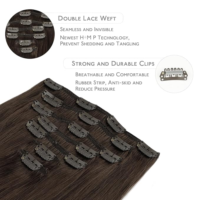 - 【Clip in Hair Extensions Specification】- WENNALIFE clip in human hair extensions, 7 pieces 120g with 16 clips per set. 105g net weight without clips, 120g with clips. Just to thicken your hair, suggest 1-2 sets; for a full head, suggest 2-3 sets; if you want to add length and volume, we recommend 2-3 sets. Also, we offer 2 replacement clips.