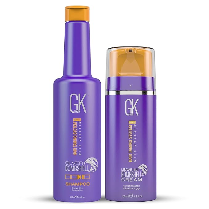 GK HAIR Global Keratin Purple Shampoo/Toner Silver Bombshell 280ml I Leave In Bombshell Cream (100ml/ 3.4 fl. oz)