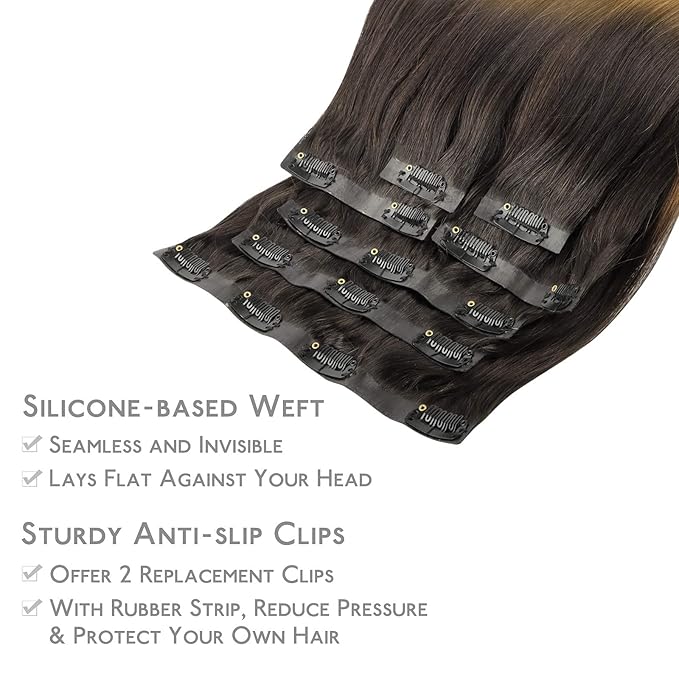 - 【Seamless Clip In Hair Extensions Quality Assurance】- Invisible and comfortable seamless clip in hair extensions are made with high-quality virgin human hair, silky salon professional human hair, soft like your own natural hair, no shedding, no tangling. They are made with a thin silicone-weft base that lays flat against your head and lets you feel more comfortable. A thin silicone-based weft base can create a more natural look.