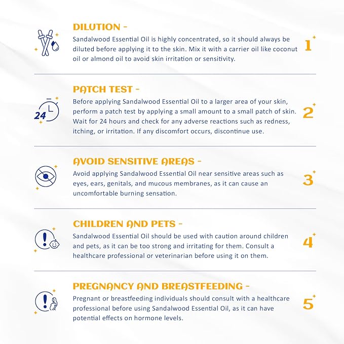 - Multi Purpose: Sandalwood essential oil has a wide range of uses, it can be used to moisturize the skin, improve the skin condition, and its strong and long-lasting fragrance is also very suitable for perfume blending