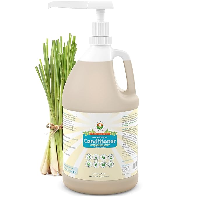 Organic Conditioner - Hypoallergenic, Chemical-Free, Sulfate Free Natural Conditioner for Dry or Damaged Hair, Raw Probiotic Hydrating Soapberry Formula, Gallon, Lemongrass
