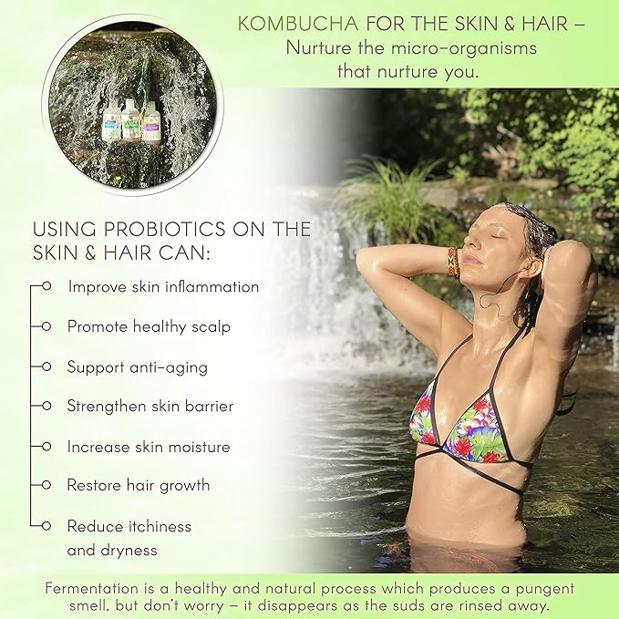 - π LIKE KOMBUCHA FOR YOUR SCALP - Crafted using potent vegan probiotics and fermented wild harvested fruits and plants, this powerful herbal conditioner will have a temporary vinegar-like odor which disappears once it is rinsed off.