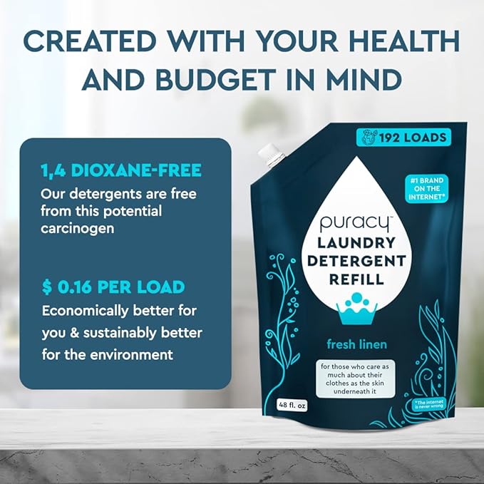 Puracy Laundry Detergent Refill - Enzyme-Powered Liquid Laundry Detergent Concentrate, Natural Laundry Detergent Seen on TikTok, Non-Toxic (Fresh Linen, 48 fl oz, 192 Loads)