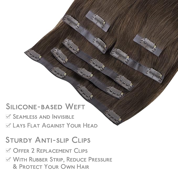 - 【Seamless Clip In Hair Extensions Quality Assurance】- Invisible and comfortable seamless clip in hair extensions are made with high-quality virgin human hair, silky salon professional human hair, soft like your own natural hair, no shedding, no tangling. They are made with a thin silicone-weft base that lays flat against your head and lets you feel more comfortable. A thin silicone-based weft base can create a more natural look.