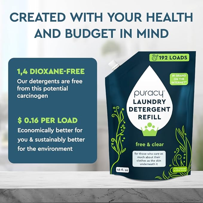 Puracy Laundry Detergent Refill - Enzyme-Powered Liquid Detergent Concentrate, Natural Laundry Detergent Seen on TikTok, Non-Toxic (Free & Clear, 48 fl oz, 192 Loads)