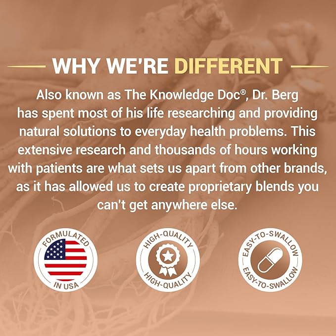 - ๐ช๐๐ฌ ๐ช๐โ๐ฅ๐ ๐๐๐๐๐๐ฅ๐๐ก๐ง - Also known as The Knowledge Doc, Dr. Berg has spent most of his life researching and providing natural solutions to everyday health problems. This extensive research and thousands of hours working with patients are what sets us apart from other brands, as it has allowed us to create proprietary blends you canโt get anywhere else.