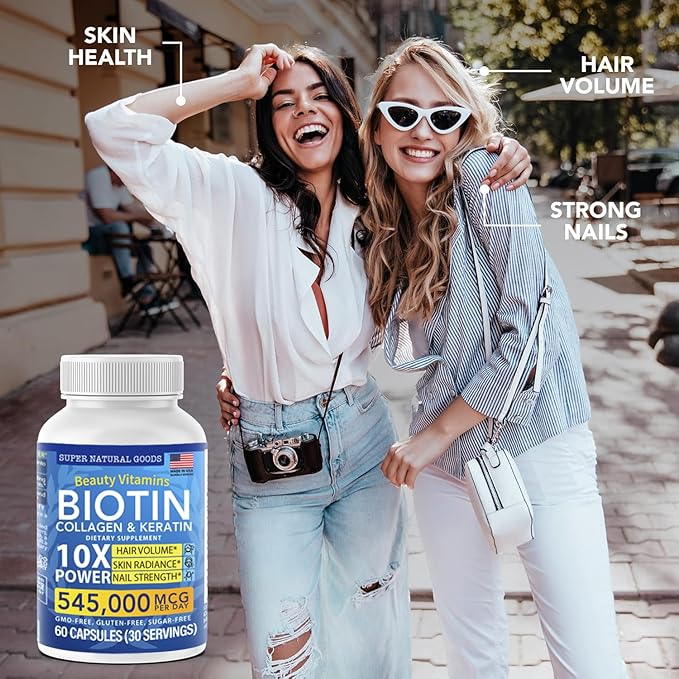 - Vitamin Packed Beauty Vitamins - Improve your skin with rich nutrients from vitamins B6, vitamin B2, vitamin A, vitamin D & B12! Biotin and collagen is known to boost hair growth for a complete dermal repair complex. This powerful daily vitamin boosts skin hydration, clear skin and face, stronger nails with a super-potency and bioavailability that goes beyond gummies, liquid drops, powder, pill, spray, softgels for the ultimate womens hair thinning treatment.