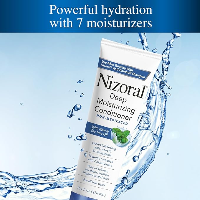 Nizoral Deep Moisturizing Conditioner with Mint & Tea Tree Oil for All Hair Types - Free of Sulfates, Parabens, Artificial Fragrances and Dyes, 9.4 oz