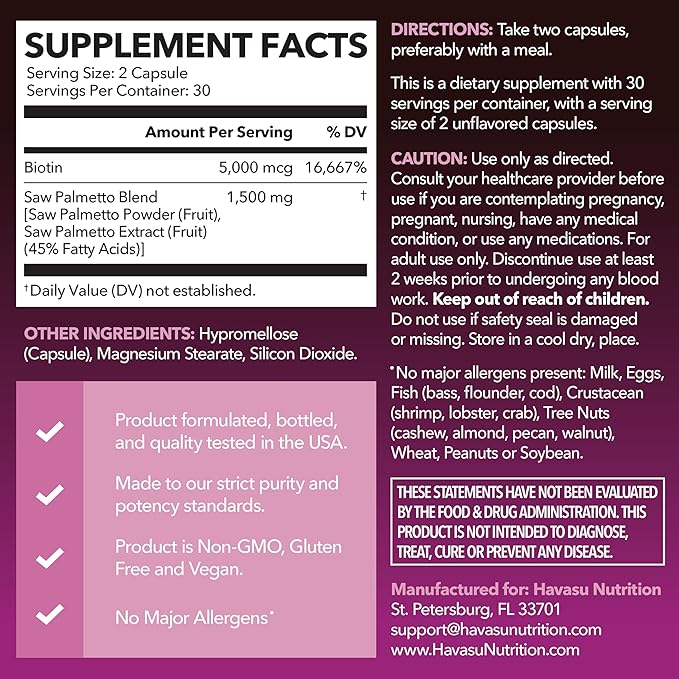 - Womens Saw Palmetto - Formulated with 1500mg of saw palmetto and 5000mcg of biotin, these capsules act as a DHT blocker to support hair and skin health, helping maintain natural beauty from within.