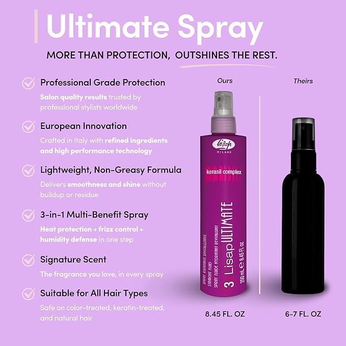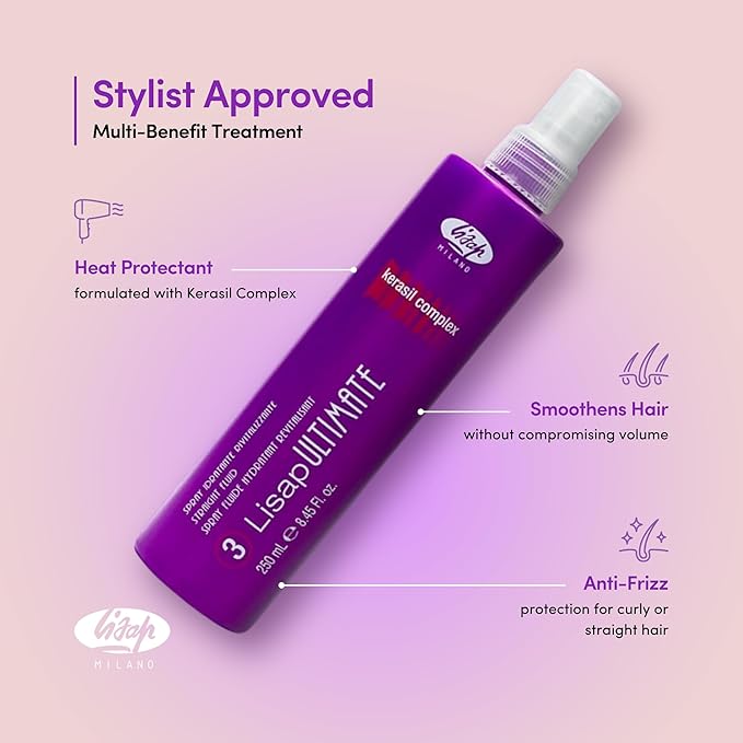 Lisap Heat Protectant for Hair, Ultimate Straight Fluid Hair Spray, Anti Frizz Hair Products, Thermal Protection Hydrating, Strengthening, Straightening & Styling Spray, For All Hair Types, 8.45 fl oz