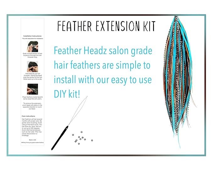 - 9”–14” Natural & Turquoise Color Hair Feathers: Real rooster feather extensions in natural shades. Once they grow out, simply remove and reapply to your hair. Perfect for adding flair and style to any look.