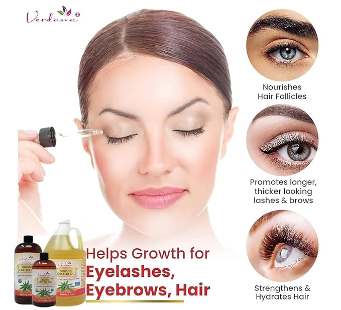 Verdana Organic Castor Oil – 32 Fl Oz Bulk Size – Cold Pressed, Unrefined, Hexane-Free – USDA Organic – Natural Moisturizer for Hair Growth, Eyelashes, Skin, Scalp & Castor Oil Packs