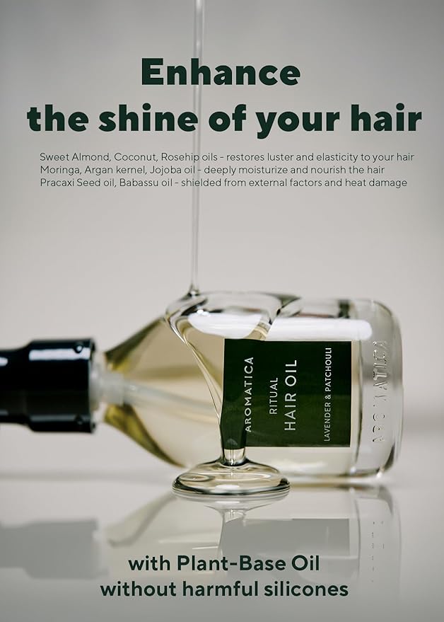 - [AROMATICA Natural Ingredient] Made with safe, natural ingredients like Moringa, Argan, Jojoba, Almond, Coconut, and Rosehip oils, this ritual hair oil nourishes, restores, and transforms your hair for a healthy shine