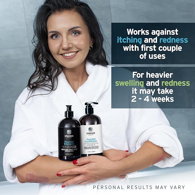 Psoriasis Shampoo and Conditioner Set - Peat Mud Therapy for Red & Itchy Scalp with Tea Tree Oil, No Coal Tar. For Both Men and Women. 2 x 13.5 Oz