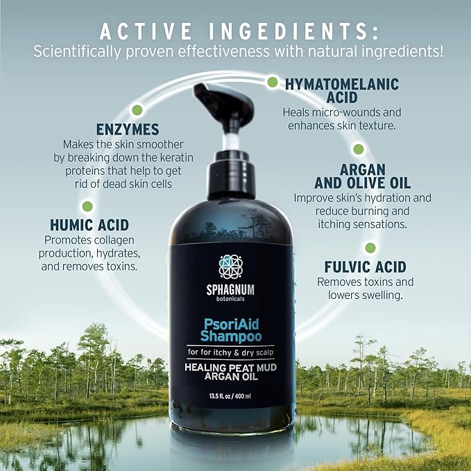 - EFFECTIVE AGAINST PSORIASIS AND SEBORRHEIC DERMATITIS: 100% natural shampoo that helps to get rid of itchy and flaky scalp. A unique blend of powerful balneological peat and tea tree oil in a scientifically proven mixture that deeply hydrates, nourishes and cleanses your scalp, giving you back your beautiful hair. Free from cancerogenic coal tar, no chemicals added - just pure nature.