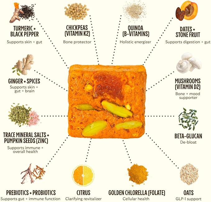 - DELICIOUSLY CONVENIENT: Crafted by an in-house pastry chef, every Bite is chewy, subtly sweet, and satisfying. Just one Bite a day — anytime, anywhere. No added sugar, no hassle, no pill fatigue. Just real food, ready at any time. Just one bite a day! Easy to use and on-the-go, travel friendly. Plus, it’s much more fun to eat than it is to take.