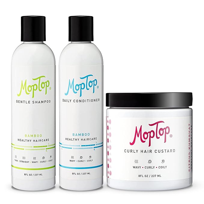 MopTop Curly Hair Routine, Gentle Shampoo + Daily Conditioner + Styling Gel for Wavy and Coily Tresses, Color Safe, Moisturizing Women's Hair Care