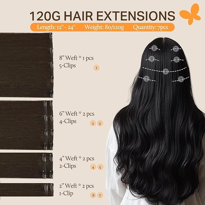 - Soft and Comfortable Clip in Hair Extensions: DOORES 7 pcs 80g clip in hair extensions, 65 g net weight. The hair is super soft, full ends and no split, making you to indulge in silky hair. Hand-made and double layer hair weft make the hair secure