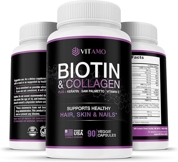 Vitamo Hair Growth Vitamins for Women | Hyaluronic Acid & 50,000 mcg B-Complex (B1, B2, B3, B6, B7) | Biotin and Collagen | Keratin – Advanced Supplement for Hair, Skin & Nails | 90 Capsules
