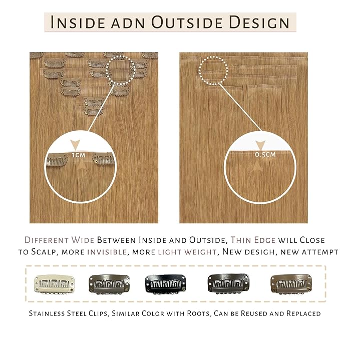 - ღ【Real Hair Extensions Clip in Human Hair】—We adopt real remy human hair with advanced sewing technology. Silky salon professional hair extensions like your own natural hair, no shedding, no tangling. Our seamless clip in hair extensions can be restyled, strengthened, curled, dyed.