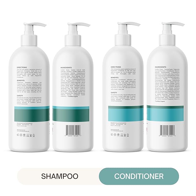 Peppermint Shampoo and Conditioner with Castor Oil & Biotin, Soothes Dry, Itchy Scalp, Strengthens Hair, Reduces Thinning & Hair Loss, Promotes Growth, Adds Volume, Sulfate-Free, 16 fl oz Each