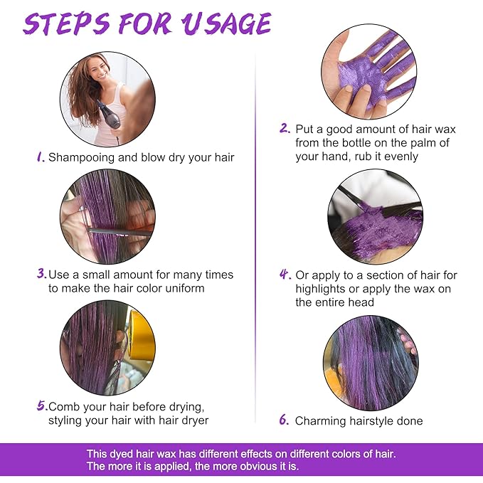 - 🎉Easy to use and wash: An easy to use water soluble hair color styling wax, just get it into palm and wipe away, apply hair makeup wax to the part need shape, build any hairstyle by hand. It is strong holding and no sticky after using, wash out with just warm water.