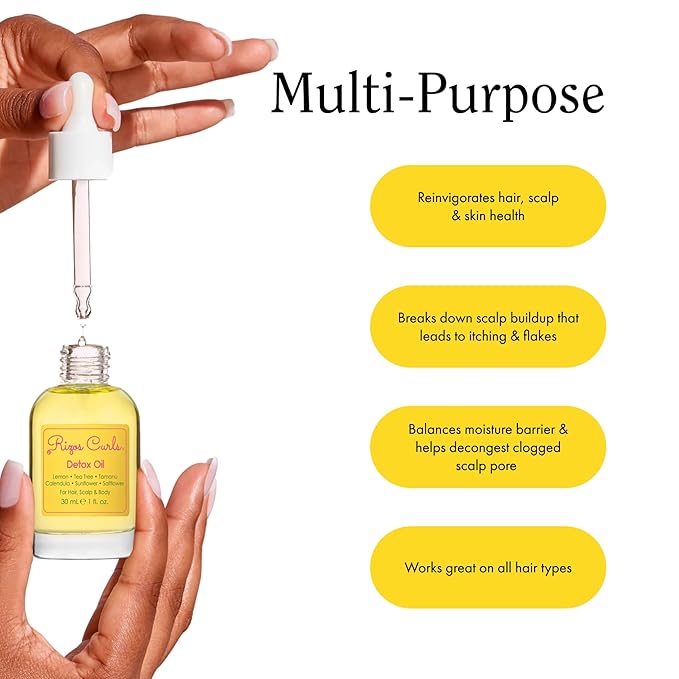Rizos Curls Detox Oil, Detox & Balance Scalp to Reduce Buildup & Soothe Irritation, Support Hair Growth & Health with Tea Tree & Lemon Oil, For All Hair Types 1a - 4c, 1 oz