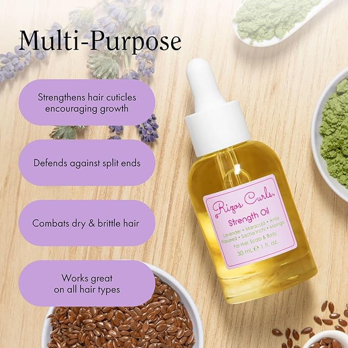 Rizos Curls Strength Oil, Promote Stronger, Longer & Thicker Hair, Improve Split Ends and Repair Dry Brittle Hair, Protects Against Damage & Breakage, For All Hair Types 1a - 4c, 1 oz