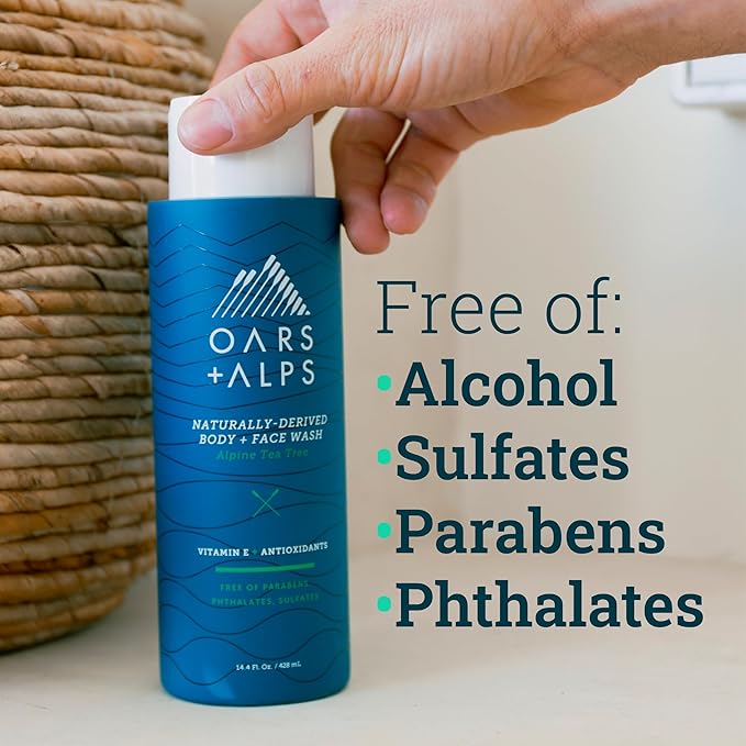 Oars + Alps Men's Moisturizing Body and Face Wash, Skin Care Infused with Vitamin E and Antioxidants, Sulfate Free, Alpine Tea Tree, 3 Pack