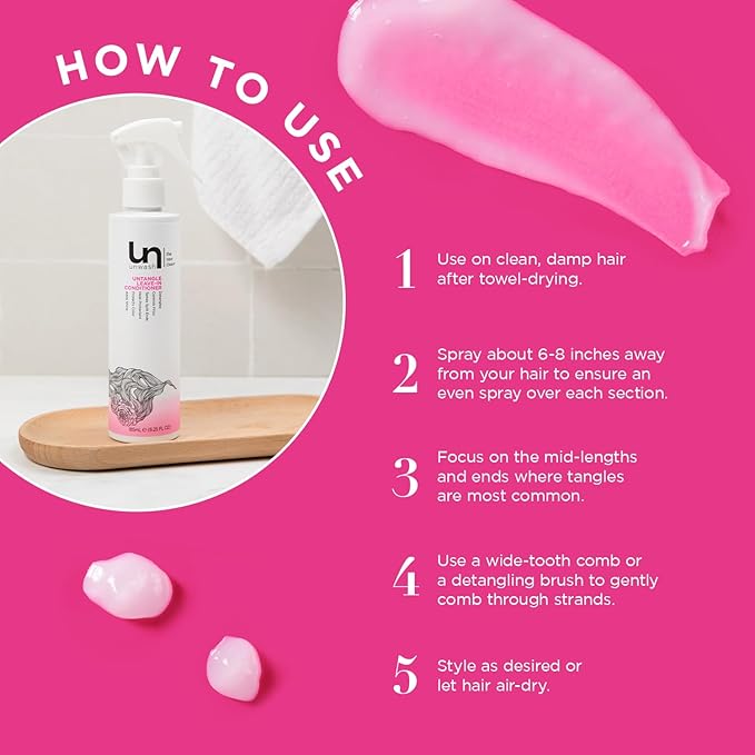 Unwash Untangle Leave-In Conditioner - Gentle Formula, Detangles, Controls Frizz, Enhances Shine, Protects Against Heat, Vegan, Cruelty Free, Sulfate & Paraben-Free, 6.25 fl oz