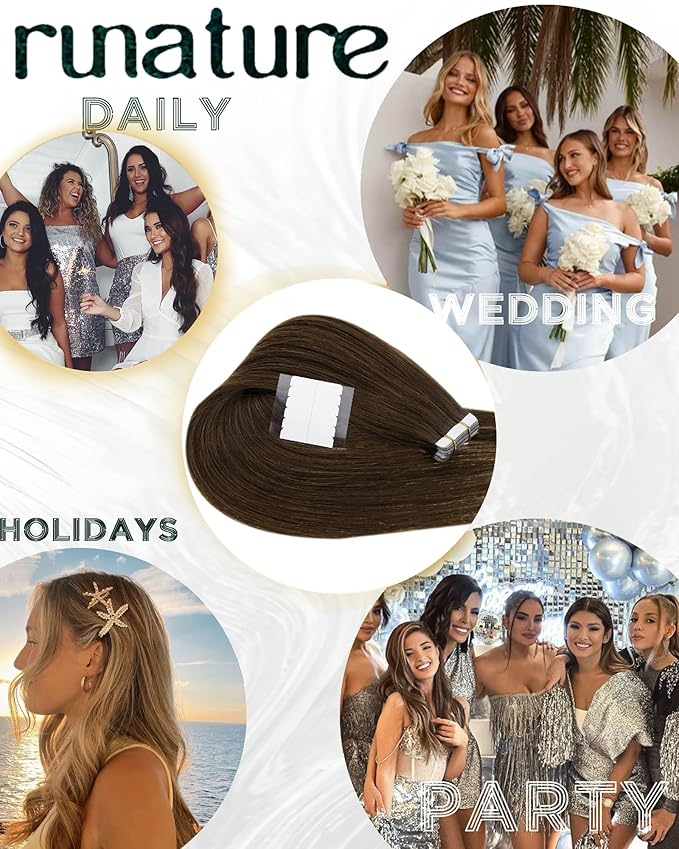 RUNATURE 30 Inch Invisible Tape in Hair Extensions Human Hair Brown Straight Tape in Extensions Long Hair Color #4 Brown Silky 50g 20pcs