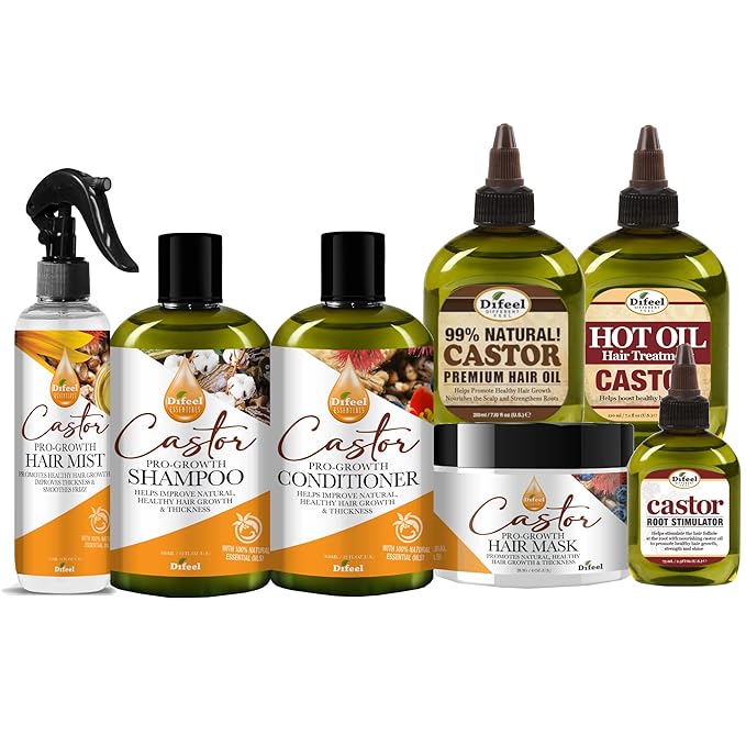 - This Deluxe Hair Growth Collection Includes 7 of our best Difeel Castor Hair Growth Products. Includes all of the following items: