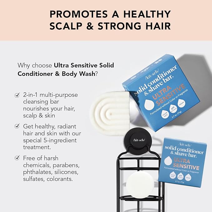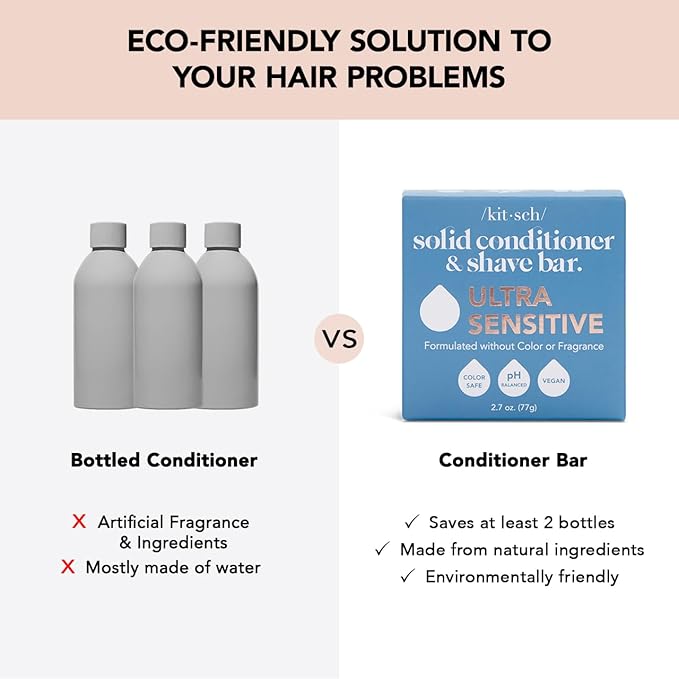 - SAVE TIME & SPACE WITH YOUR 2-IN-1 SOAP BAR: Kitsch brings you an ultra-sensitive, fragrance-free conditioner bar and shave bar for women. Cleanse your hair and shave on the go with just one convenient bar. Perfect for travel—no liquids, no hassle in carry-on luggage.