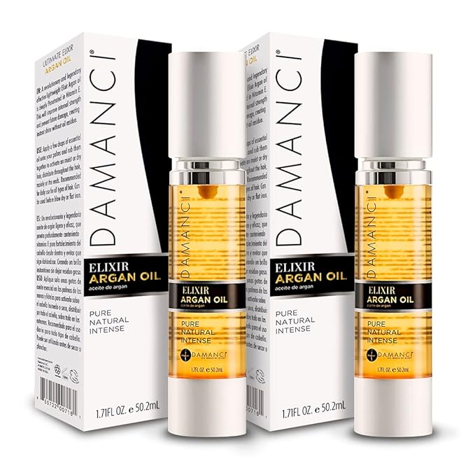 - DAMANCI Argan Oil - A lightweight, multitasking hair oil for every occasion. It protects from UV damage, smooths split ends, removes frizz, and adds superior hair shine. Heat protection up to 450°F / 232°C.