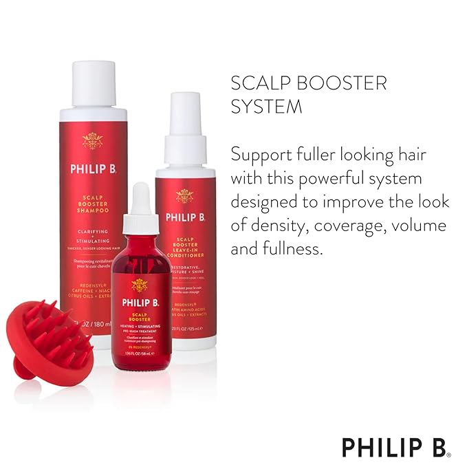 Philip B. Scalp Booster System - Includes Pre-Wash Scalp Treatment, Shampoo, Leave-In Conditioner and Scalp Massager