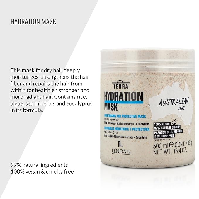 Lendan - Hydrating Hair Mask - Terra Hydration Mask - 500 ml - for Dry and Damaged Hair - Hydrates and Repairs - Prevents Color Loss - Anti-Frizz