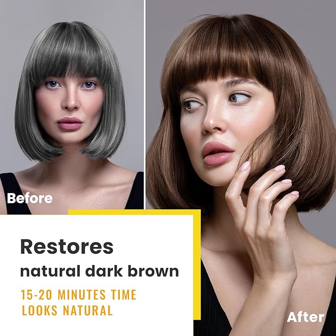 - 【Say Goodbye to Gray Hair】 Simply massage the dark brown hair dye shampoo into your hair and wait 10-20 minutes to quickly color your hair dark brown.(Warm tip: do a skin test before using for the first time)