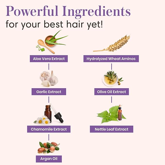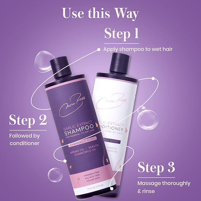 - Odorless Garlic with Nourishing Essentials – Powered by odorless garlic extract, argan oil, and amino acids, this moisturizing shampoo and conditioner set hydrates dry areas, seals in moisture, and adds silky softness. Argan oil boosts shine, amino acids strengthen strands, and the shampoo cleanses the scalp for a nourished, refreshed look.