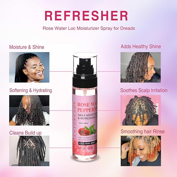 Moisturizing Rose Water and Peppermint Hair Scalp Refresher with Castor Oil for Locs and Dreadlocks - Natural Loc Care and Maintenance (3.4oz)