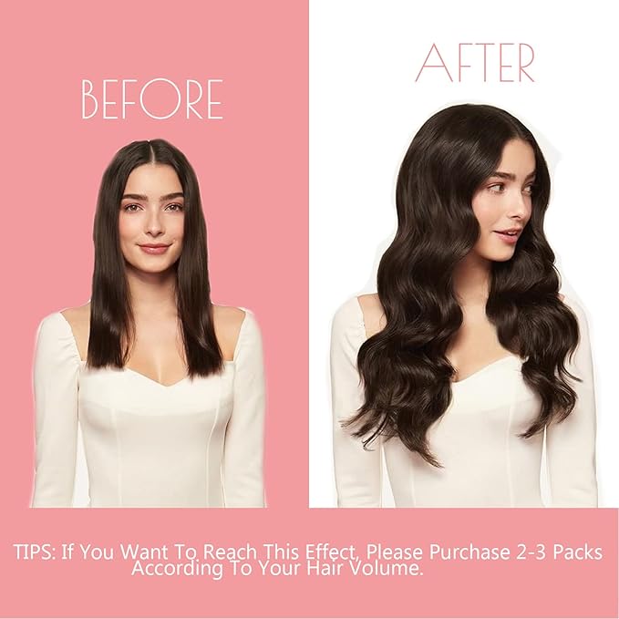 - 【Easy and Fast to Wear】You Will Can Create a Gorgeous Style Within in a Few Minutes, Easiest and Quickest Way to Add Your Hair Length and Volume, Can Do it by Yourself. One pack is 7 Pieces Attached With 16clips, 110gram, 7 Pieces Combination Meet Your Different Requirements.