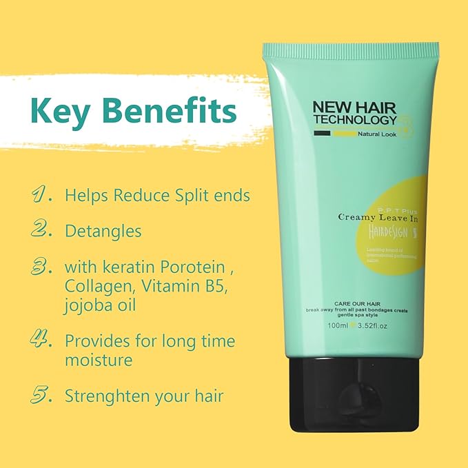 Lightweight Keratin Protein Leave In Conditioner for Dry Damaged Hair,Collagen Deep Repairing Anti-Frizz Leave in Hair Conditioner Tube, Heat ProInfused with vitamin B5,Moisturizing Jojoba oil