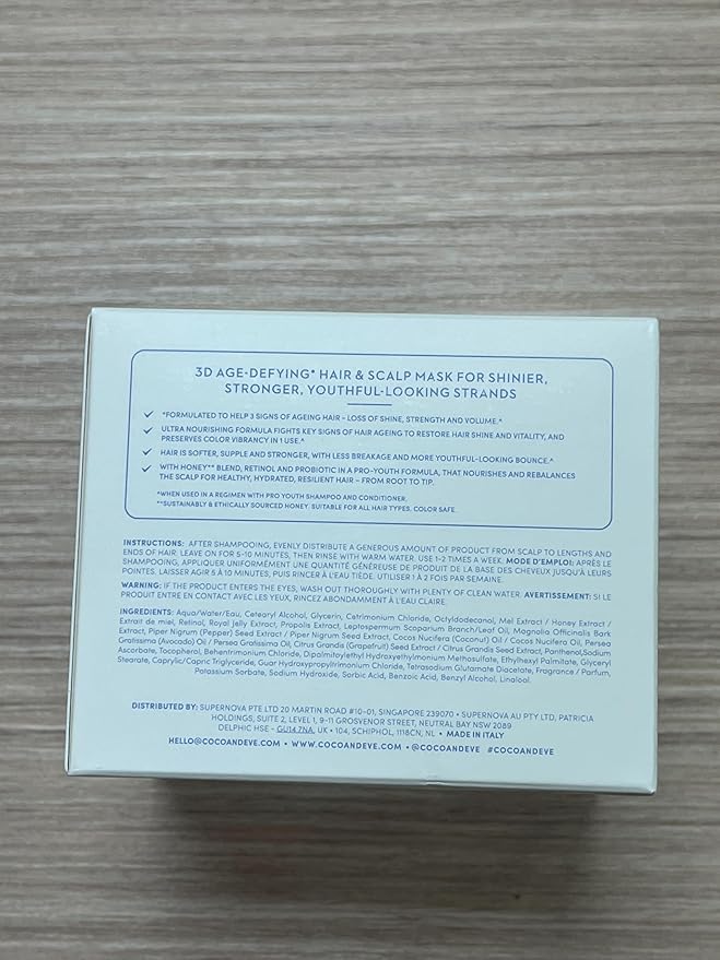 Coco & Eve Pro Youth Hair & Scalp Mask. Anti-aging, strength, shine, volume. Regulate dandruff. With honey, retinol for youthful hydrated hair.