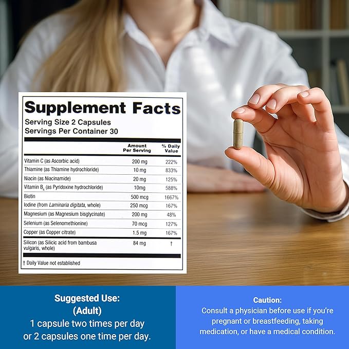 - MAXIMUM STRENGTH BIOTIN FOR HAIR HEALTH: Our proprietary blend of biotin, iodine, and selenium supports longer, stronger, and healthier hair, eyelashes, skin, and nails, addressing thinning and damage effectively.