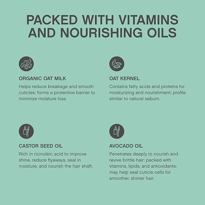 - For Soft, Bouncy Hair: Our vegan Oat Milk hair conditioner hydrates and strengthens, diminishing the likelihood of breakage